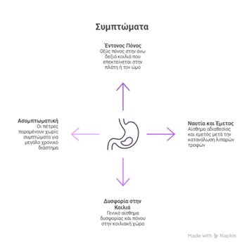 Σε αρκετές περιπτώσεις, οι πέτρες στη χολή δεν προκαλούν συμπτώματα και εντοπίζονται τυχαία σε απεικονιστικό έλεγχο. Ωστόσο, όταν μετακινηθούν και φράξουν τους χοληφόρους πόρους, μπορεί να εμφανιστούν έντονα συμπτώματα, όπως πόνος και φλεγμονή, που απαιτούν άμεση ιατρική αξιολόγηση.